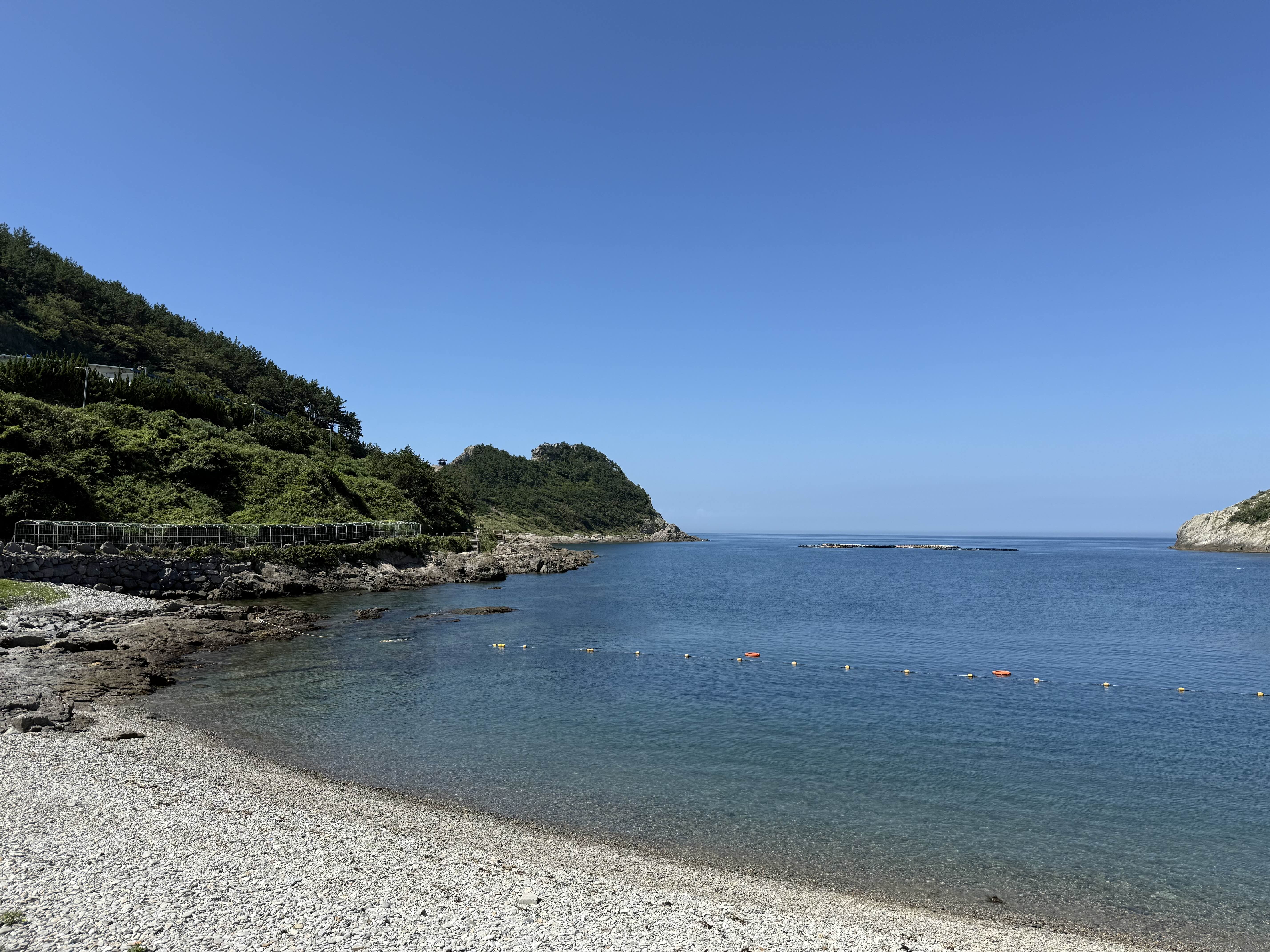 깨끗하고 맑은 물이 얕게 찰랑이는 고여사민박 앞에 있는 후포해수욕장을 지나