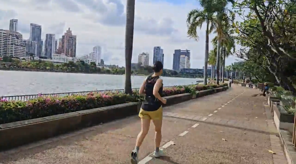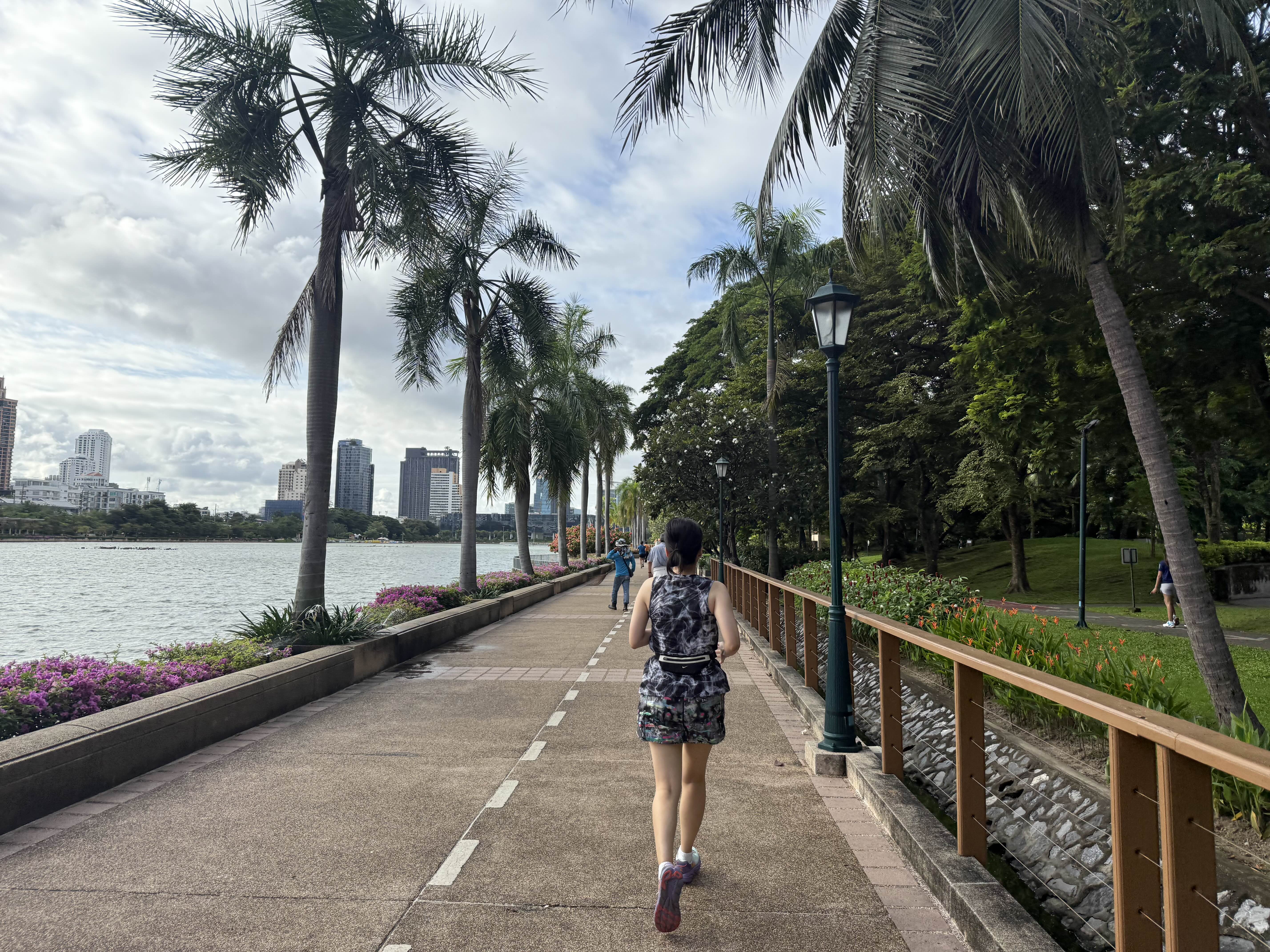 미리 달리기 시작해야 호수 두 바퀴를 돌았을 때 딱 5km가 만들어질 것이다.