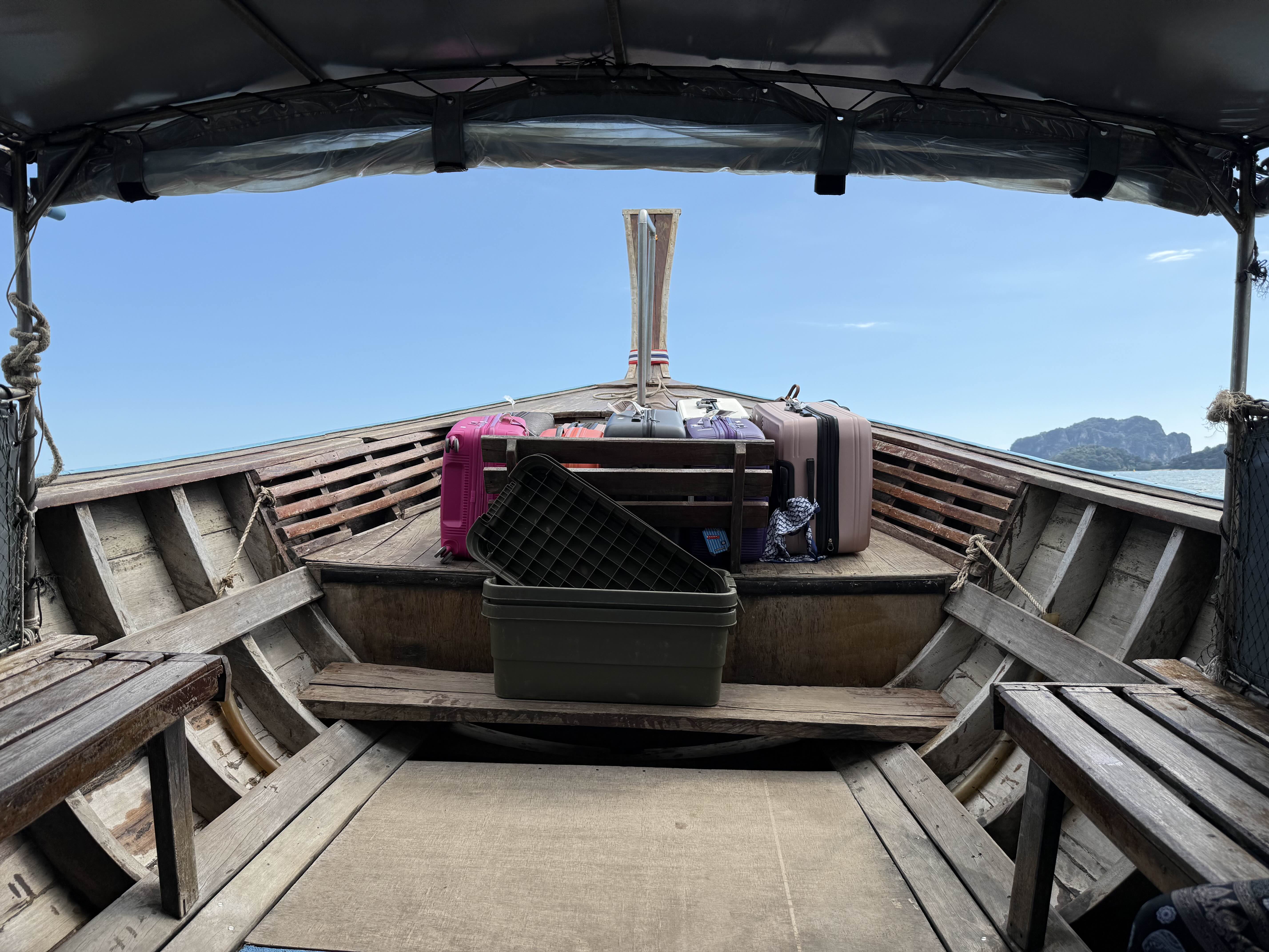 9명의 사람과 캐리어를 싣고 롱테일 보트는 라일레이 비치로 출발!