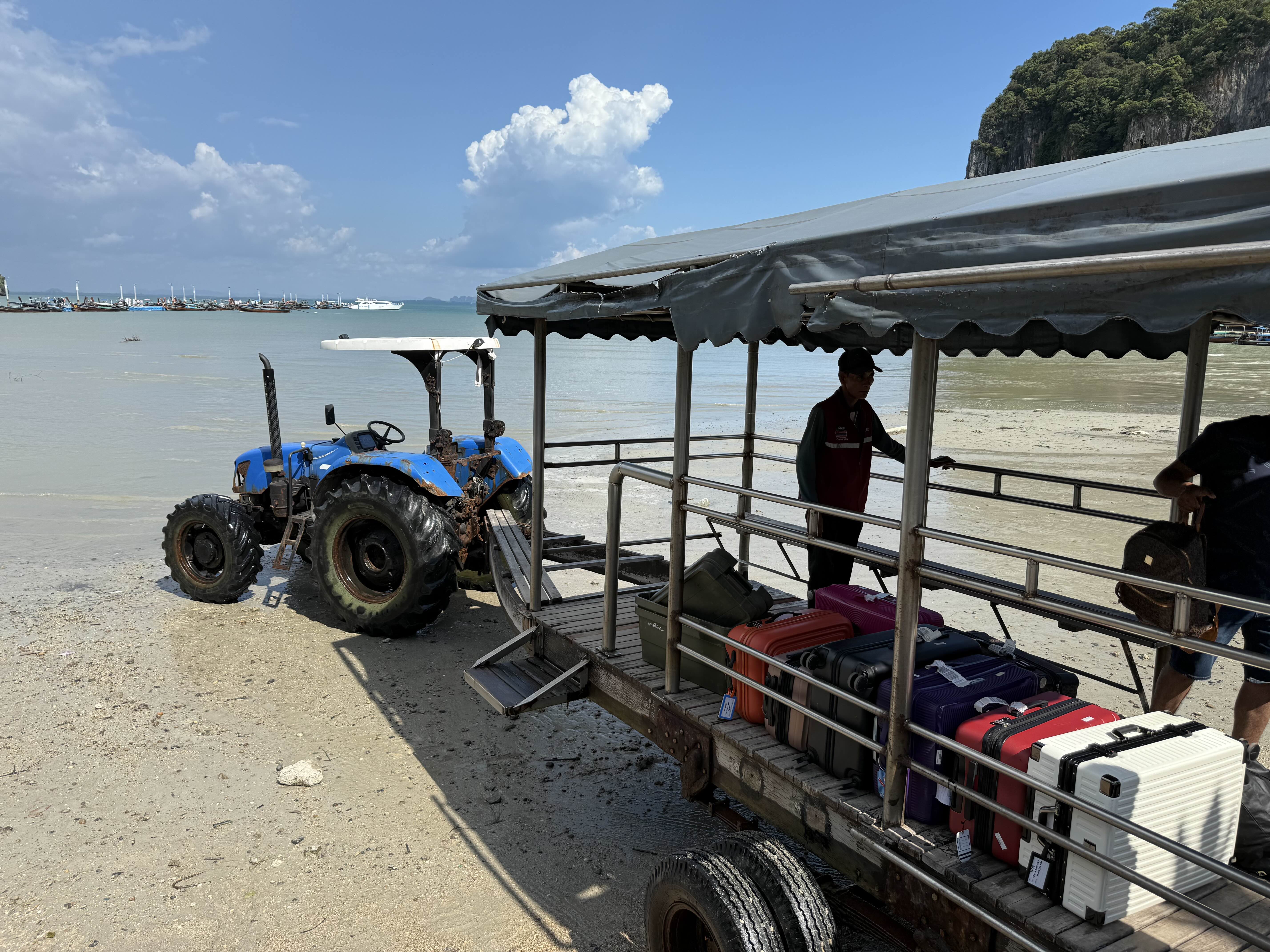 짐과 사람을 실은 버기카를 타고 선착장으로 이동.