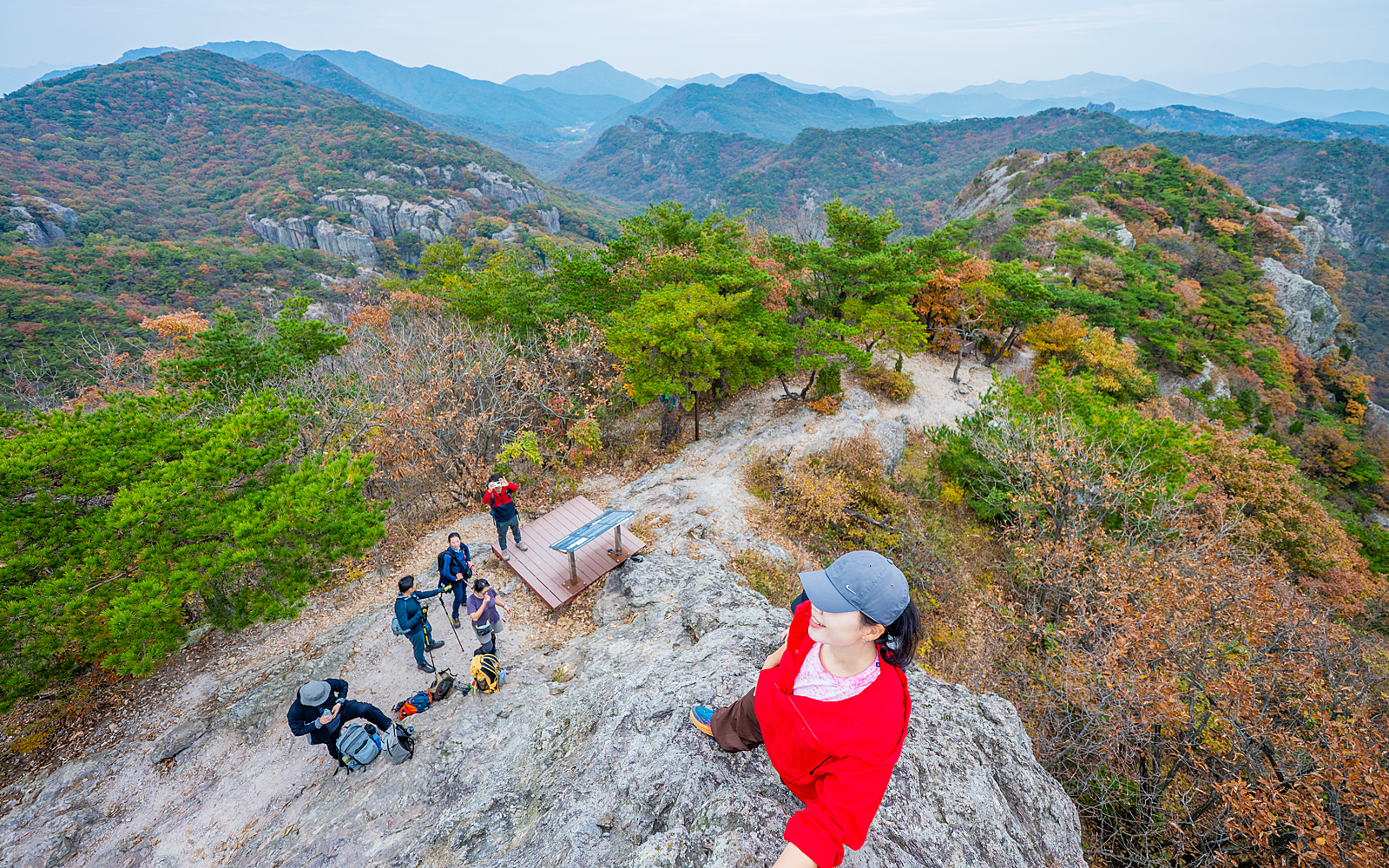 300미터도 안 되는 귀여운 천마봉이지만 주변의 겹겹이 쌓인 산세가 엄청난 고도에 올라온 듯한 착각을 일으킨다.