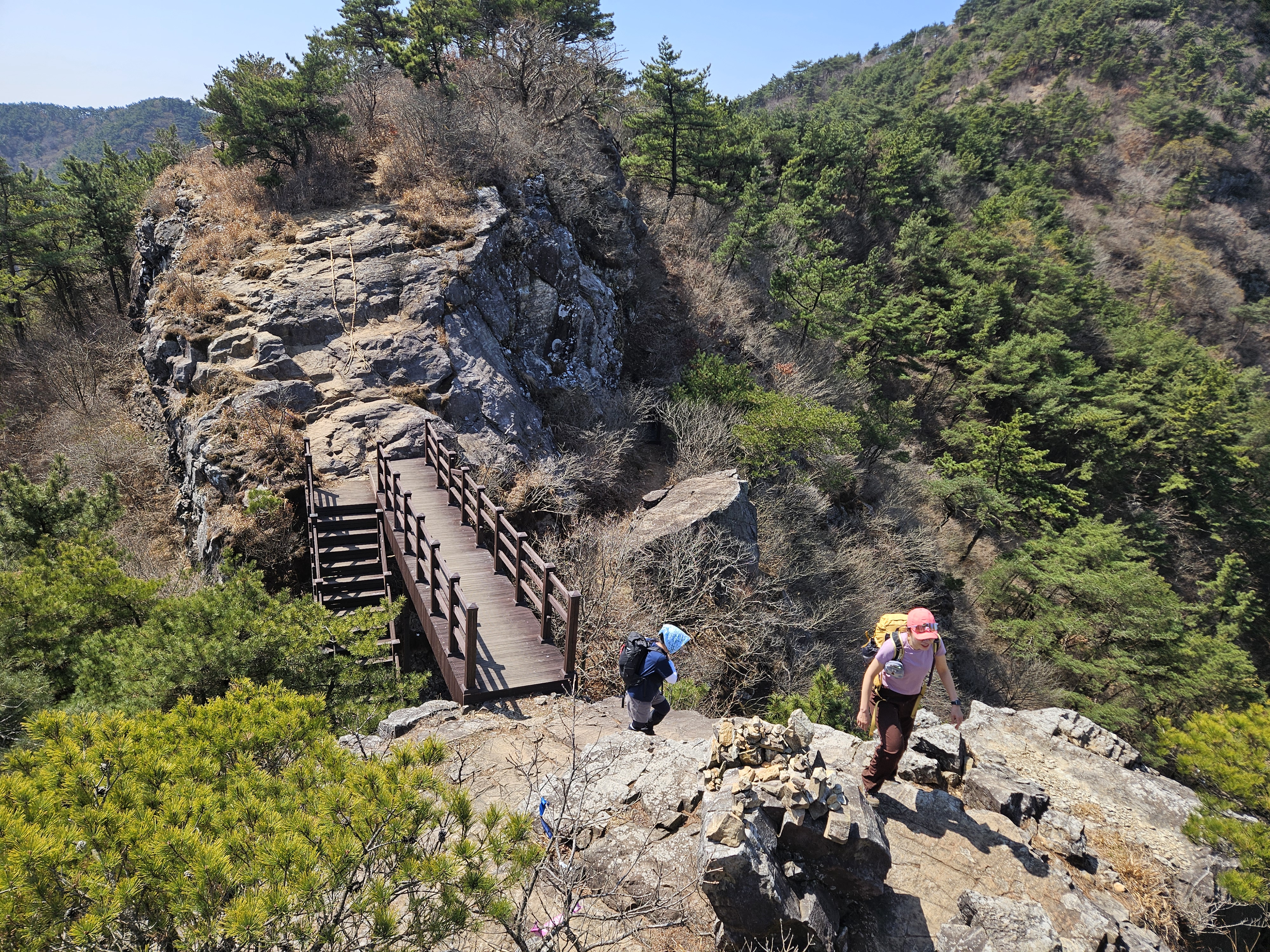 멋지게 켜켜이 쌓인 돌산에는 귀여운 출렁다리도 있었고 넉넉한 통천문(?)도 있었다.