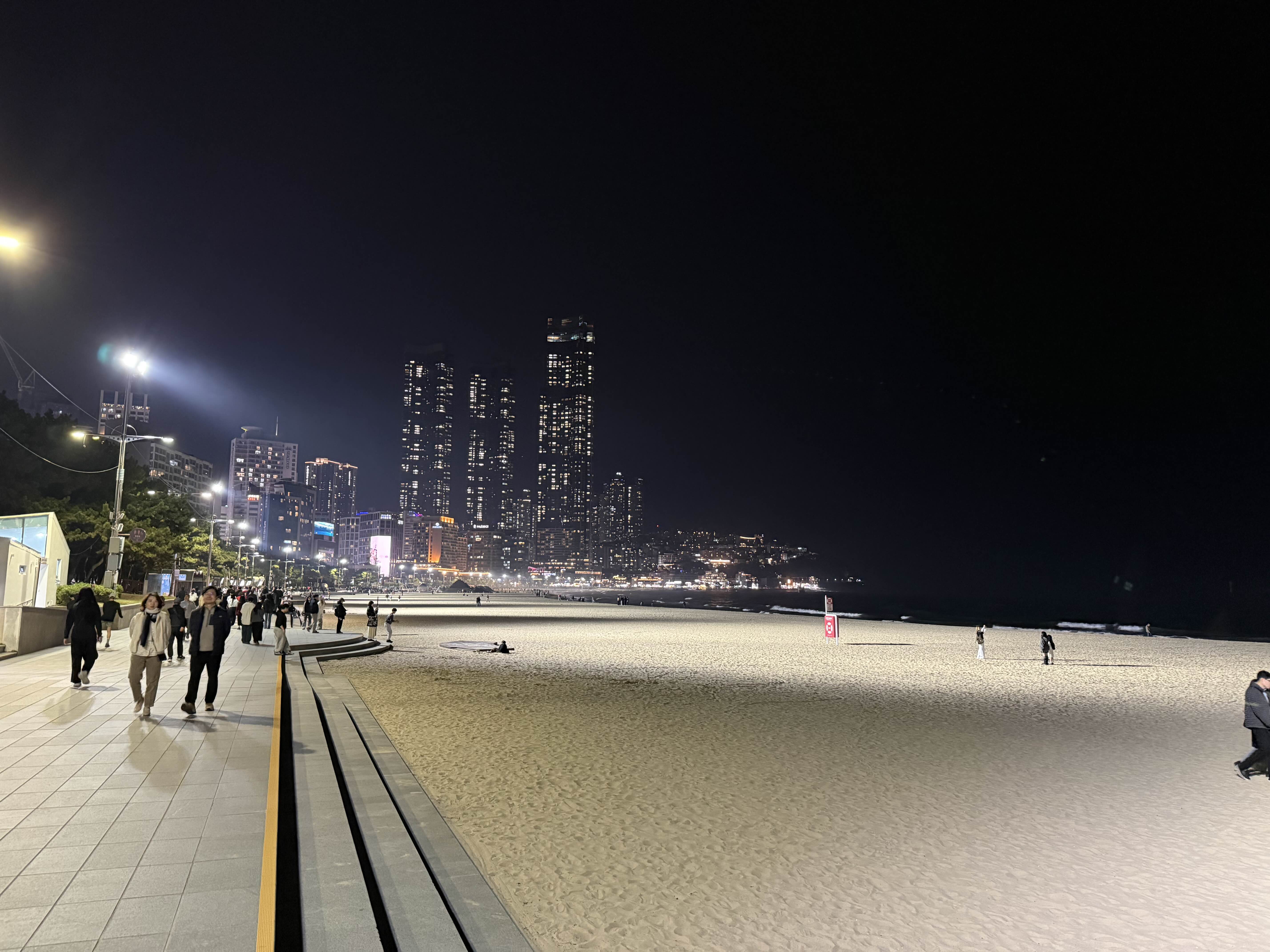 늦은 밤의 해운대를 걸어서 숙소까지 돌아왔다.