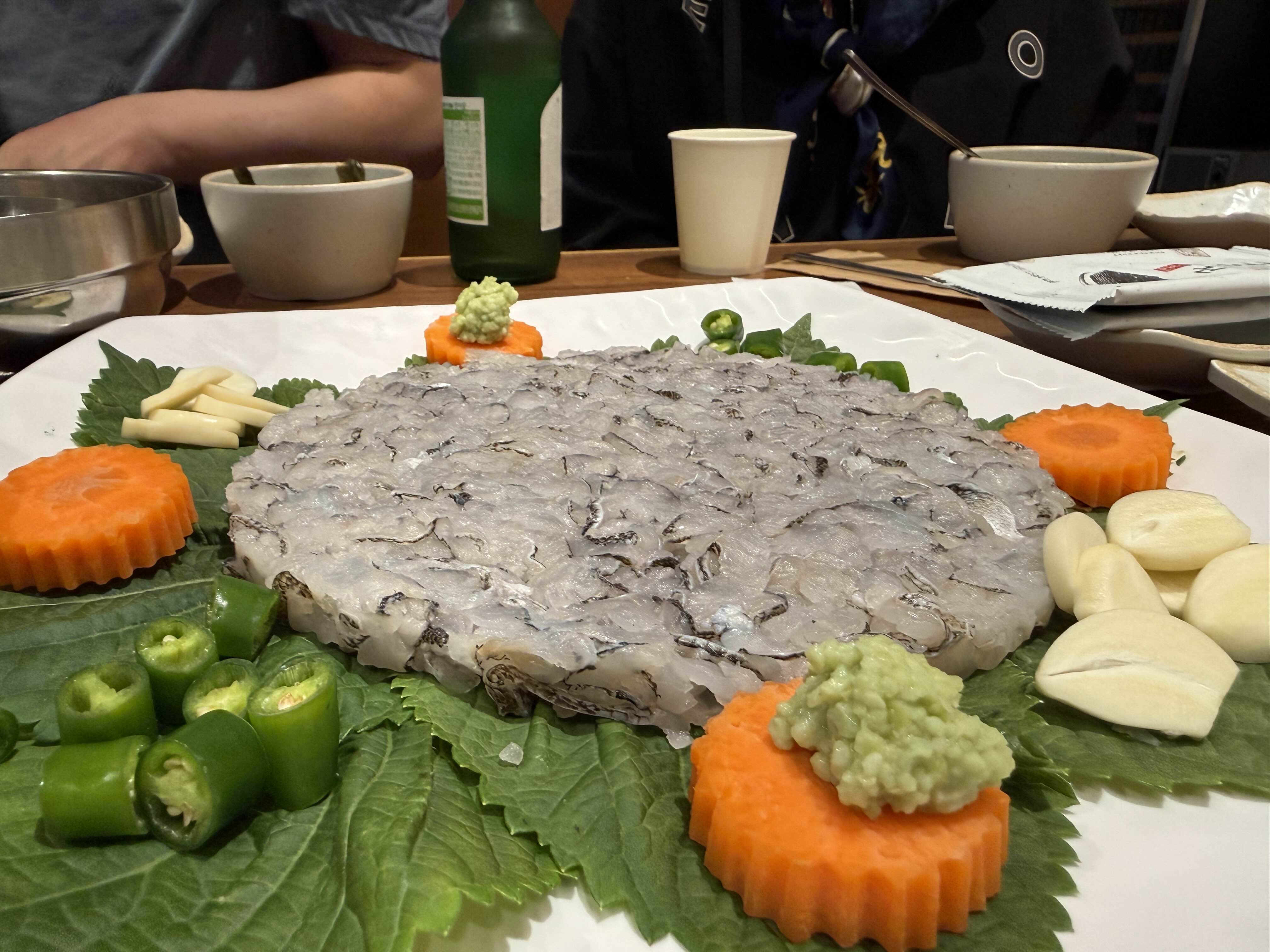 뼈가 씹히는 회를 안 좋아해서 회 자체는 그냥 그랬는데 후기와 같이 미역국이 맛있었고 쌈과 함께 나오는 묵은지가 최고였다.