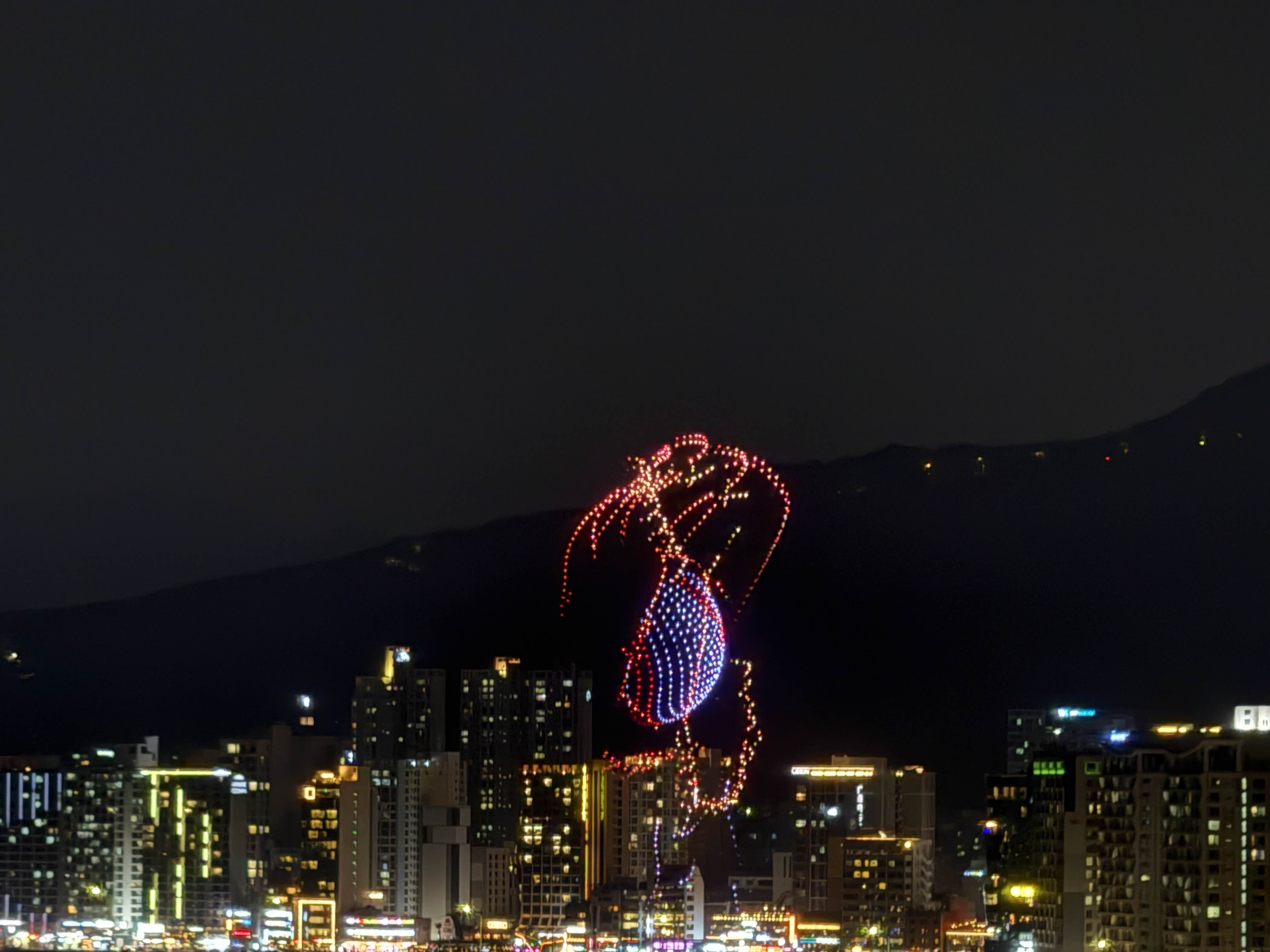 밤산책을 끝내고 리조트 근처에 도착하니 드론쇼가 한창.