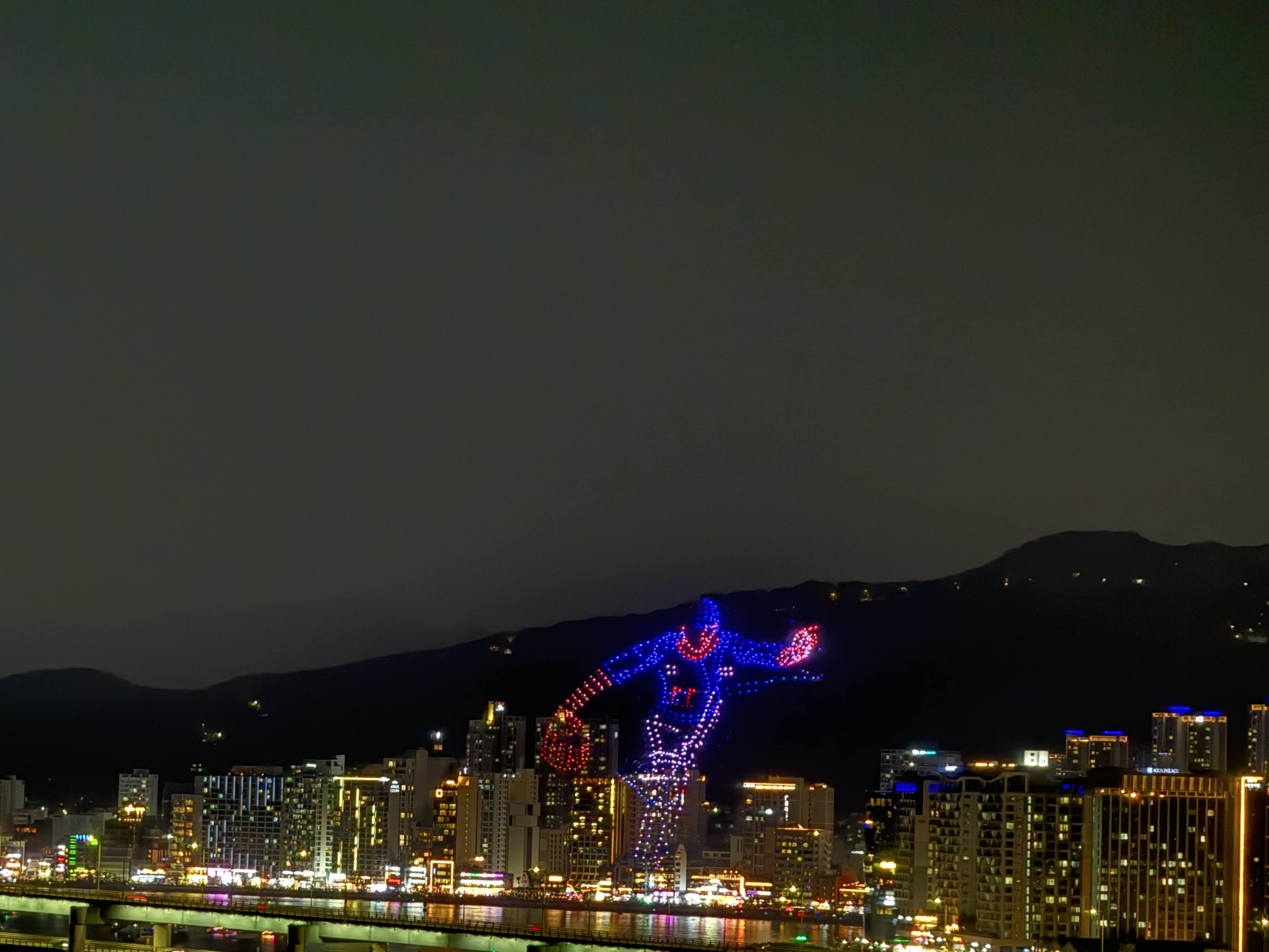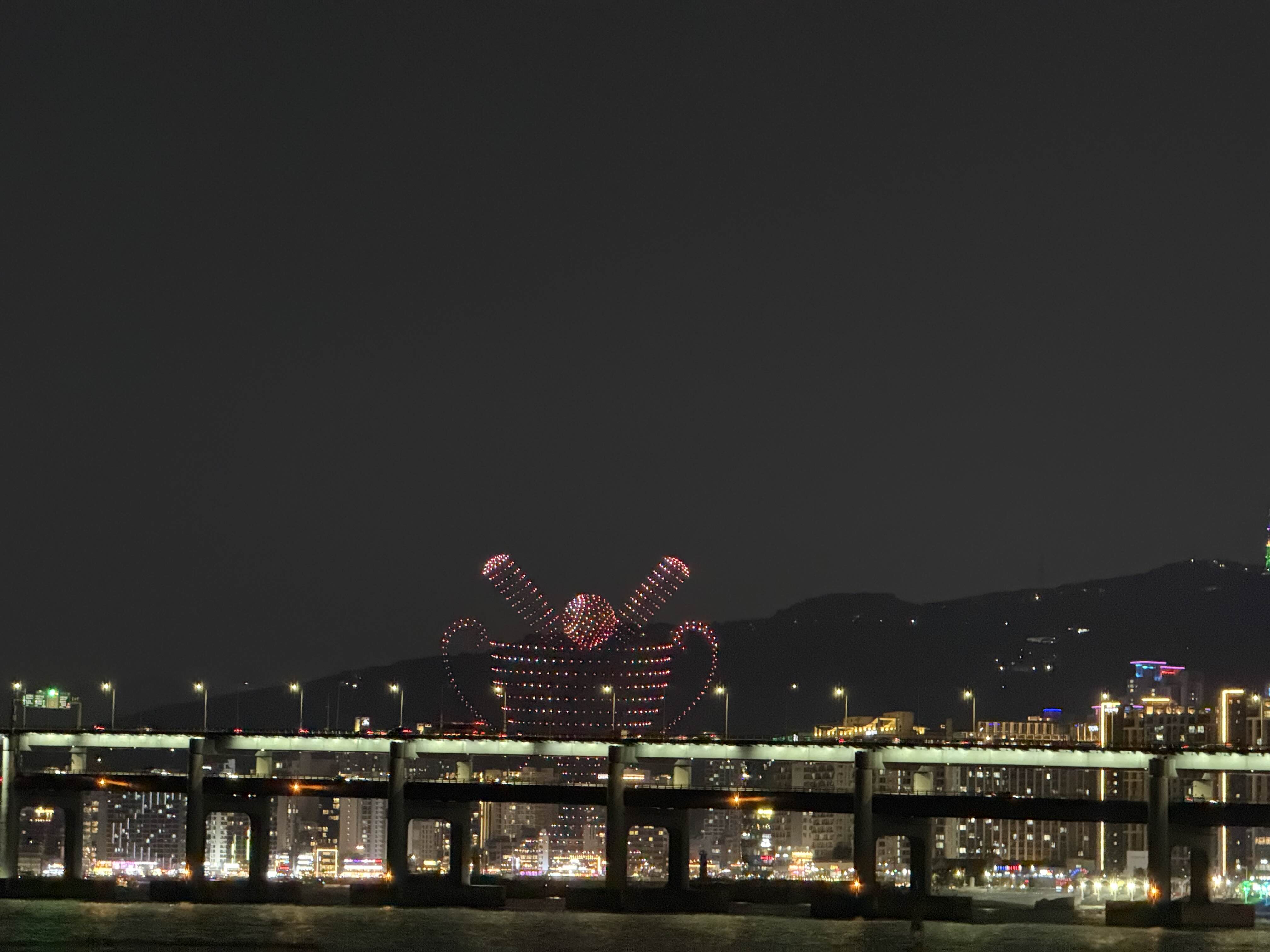 8시의 드론쇼의 끝부분을 함께했다.